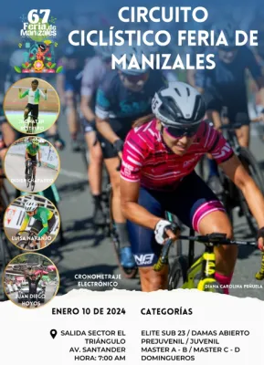 CIRCUITO CICLÍSTICO FERIA DE MANIZALES 10 Enero 2024 Documento CLASIFICACION CIRCUITO CICLÍSTICO FERIA DE MANIZALES Carreras Recientes 13 Febrero 2026 I VALIDA COPA NACIONAL GW SHIMANO MTB 2026 5 Febrero 2026 CAMPEONATO NACIONAL DE RUTA SISTECREDITO 1 Febrero 2026 CAMPEONATO DEPARTAMENTAL DE RUTA -CUNDINAMARCA 2026 17 Enero 2026 TOUR EL SALVADOR 2026