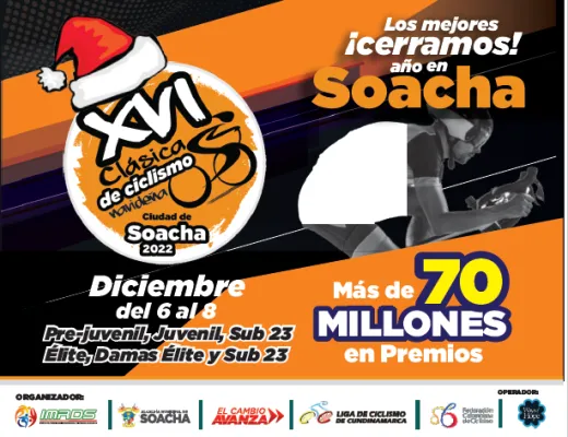 CLASICA DE SOACHA 2022 6 Diciembre 2022 al 8 Diciembre 2022 Documento LISTADO DE INSCRITOS Documento CLASIFICACION PRIMERA ETAPA CRI LA VEREDITA Documento CLASIFICACION SEGUNDA ETAPA CIRCUITO CIUDAD VERDE Documento CLASIFICACION TERCERA ETAPA CIRCUITO SOACHA Carreras Recientes 13 Febrero 2026 I VALIDA COPA NACIONAL GW SHIMANO MTB 2026 5 Febrero 2026 CAMPEONATO NACIONAL DE RUTA SISTECREDITO 1 Febrero 2026 CAMPEONATO DEPARTAMENTAL DE RUTA -CUNDINAMARCA 2026 17 Enero 2026 TOUR EL SALVADOR 2026