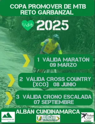COPA PROMOVER DE MTB RETO GARBANZAL 9 Marzo 2025 Documento CLASIFICACION PRIMERA VALIDA ALBAN Carreras Recientes 13 Febrero 2026 I VALIDA COPA NACIONAL GW SHIMANO MTB 2026 5 Febrero 2026 CAMPEONATO NACIONAL DE RUTA SISTECREDITO 1 Febrero 2026 CAMPEONATO DEPARTAMENTAL DE RUTA -CUNDINAMARCA 2026 17 Enero 2026 TOUR EL SALVADOR 2026