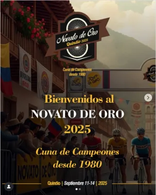 EL NOVATO DE ORO QUINDIO 2025 12 Septiembre 2025 al 14 Septiembre 2025 Documento Listado de Participantes Documento CLASIFICACION PRIMERA ETAPA BALBOA - PIJAO Documento CLASIFICACION SEGUNDA ETAPA CRI PIJAO - ARMENIA Documento CLASIFICACION TERCERA ETAPA CIRCUITO URBANO ARMENIA Carreras Recientes 16 Marzo 2026 CAMPEONATO PANAMERICANO DE RUTA MONTERIA 2026 12 Marzo 2026 XXI CLASICA CIUDAD DE ARMA RIONEGRO 2026 6 Marzo 2026 CAMPEONATO DISTRITAL DE PISTA 24 Febrero 2026 47 VUELTA INDEPENDENCIA REPUBLICA DOMINICANA 2026