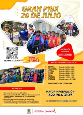 GRAN PRIX 20 DE JULIO 6 Agosto 2023 Documento CLASIFICACION GRAN PRIX 20 DE JULIO Carreras Recientes 12 Marzo 2026 XXI CLASICA CIUDAD DE ARMA RIONEGRO 2026 6 Marzo 2026 CAMPEONATO DISTRITAL DE PISTA 1 Marzo 2026 GRAN FONDO GIRO D'ITALIA 24 Febrero 2026 47 VUELTA INDEPENDENCIA REPUBLICA DOMINICANA 2026
