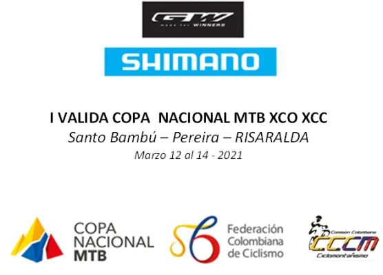 I VALIDA COPA GW SHIMANO MTB 2O21 - PEREIRA 12 Marzo 2021 al 14 Marzo 2021 Documento Guia Técnica Documento LISTADO DE PARTICIPANTES XCC Documento LISTADO DE PARTICIPANTES XCO INFANTILES Documento RESULTADO 1VALIDA XCO INFANTIL SANTO BAMBU PEREIRA Documento RESULTADO 1VALIDA XCC SANTO BAMBU PEREIRA V2 Documento RESULTADO 1VALIDA XCO SANTO BAMBU PEREIRA V2 Carreras Recientes 28 Marzo 2026 VI CLASICA NAL CLUB DEPORTIVO PROVIMAR - TECNISEG 24 Marzo 2026 VUELTA AL VALLE DEL CAUCA 2026 20 Marzo 2026 II VALIDA COPA NACIONAL COPA NACIONAL GW SHIMANO MTB 16 Marzo 2026 CAMPEONATO PANAMERICANO DE RUTA MONTERIA 2026