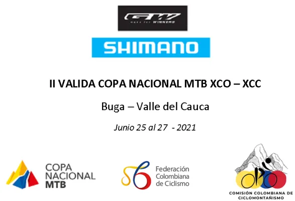 II VALIDA COPA GW SHIMANO MTB BUGA - VALLE 25 Junio 2021 al 27 Junio 2021 Documento RESULTADO 2DA VALIDA CROSS COUNTRY INFANTILES - BUGA Documento RESULTADOS 2DA VALIDA XCO - BUGA Documento RESULTADOS 2DA VALIDA XCC - BUGA Carreras Recientes 28 Marzo 2026 VI CLASICA NAL CLUB DEPORTIVO PROVIMAR - TECNISEG 24 Marzo 2026 VUELTA AL VALLE DEL CAUCA 2026 20 Marzo 2026 II VALIDA COPA NACIONAL COPA NACIONAL GW SHIMANO MTB 16 Marzo 2026 CAMPEONATO PANAMERICANO DE RUTA MONTERIA 2026