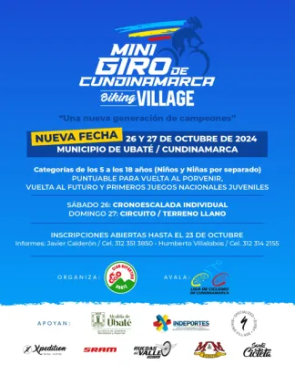 MINI GIRO CUNDINAMARCA BIKING VILLAGE 26 Octubre 2024 al 27 Octubre 2024 Documento CLASIFICACION PRIMERA ETAPA Documento SEGUNDA ETAPA CIRCUITO URBANO UBATE Carreras Recientes 13 Febrero 2026 I VALIDA COPA NACIONAL GW SHIMANO MTB 2026 5 Febrero 2026 CAMPEONATO NACIONAL DE RUTA SISTECREDITO 1 Febrero 2026 CAMPEONATO DEPARTAMENTAL DE RUTA -CUNDINAMARCA 2026 17 Enero 2026 TOUR EL SALVADOR 2026