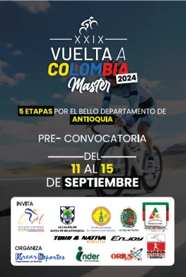 XXIX VUELTA A COLOMBIA MASTER 2024 11 Septiembre 2024 al 15 Septiembre 2024 Documento Listado de Participantes Documento CLASIFICACION PRIMERA ETAPA SANTA FE DE ANTIOQUIA Documento CLASIFICACION SEGUNDA ETAPA CIRCUITO AEROPARQUE Documento CLASIFICACION TERCERA ETAPA BARBOSA Documento CLASIFICACION CUARTA ETAPA LA CEJA-LA UNION Documento CLASIFICACION QUINTA ETAPA CRI MEDELLIN Carreras Recientes 13 Febrero 2026 I VALIDA COPA NACIONAL GW SHIMANO MTB 2026 5 Febrero 2026 CAMPEONATO NACIONAL DE RUTA SISTECREDITO 1 Febrero 2026 CAMPEONATO DEPARTAMENTAL DE RUTA -CUNDINAMARCA 2026 17 Enero 2026 TOUR EL SALVADOR 2026